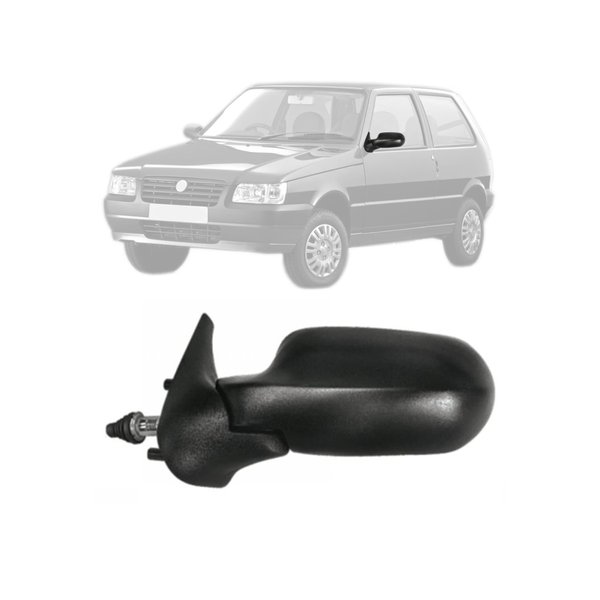 Este Retrovisor Externo é ideal para repor o item danificado do seu Fiat Uno Mille Fire ou Economy (modelo 2 Portas) dos anos 2004 a 2010. Este é o modelo **COM Controle Manual** para o lado esquerdo (motorista), permitindo o ajuste do espelho por meio de cabo interno.